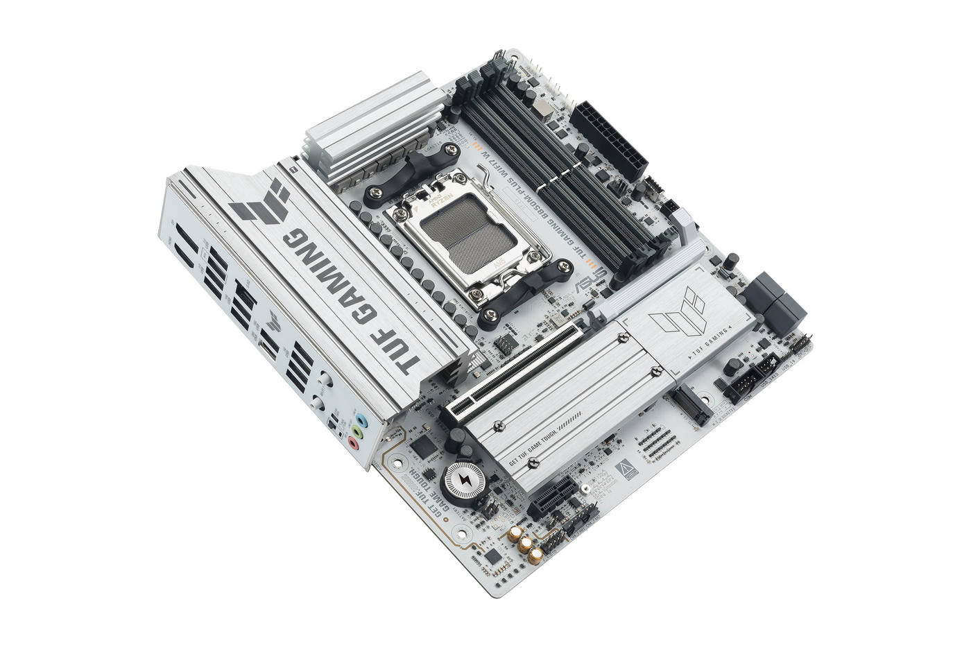 Das ASUS TUF GAMING B850M-PLUS WIFI7 W nimmt alle wesentlichen Elemente der neuesten AMD Ryzen™ Prozessoren auf und kombiniert sie mit spieletauglichen Funktionen und bewährter Haltbarkeit. Mit Komponenten in Militärqualität, einer verbesserten Stromversorgungslösung und einem umfassenden Kühlsystem übertrifft dieses Mainboard alle Erwartungen und bietet eine felsenfeste und stabile Leistung für Gaming-Marathons. TUF GAMING-Mainboards werden außerdem strengen Härtetests unterzogen, um sicherzustellen, dass sie Bedingungen standhalten, bei denen andere versagen könnten. Diese Plattform bietet die Leistung und Konnektivität, die fortschrittliche KI-PC-Anwendungen erfordern.