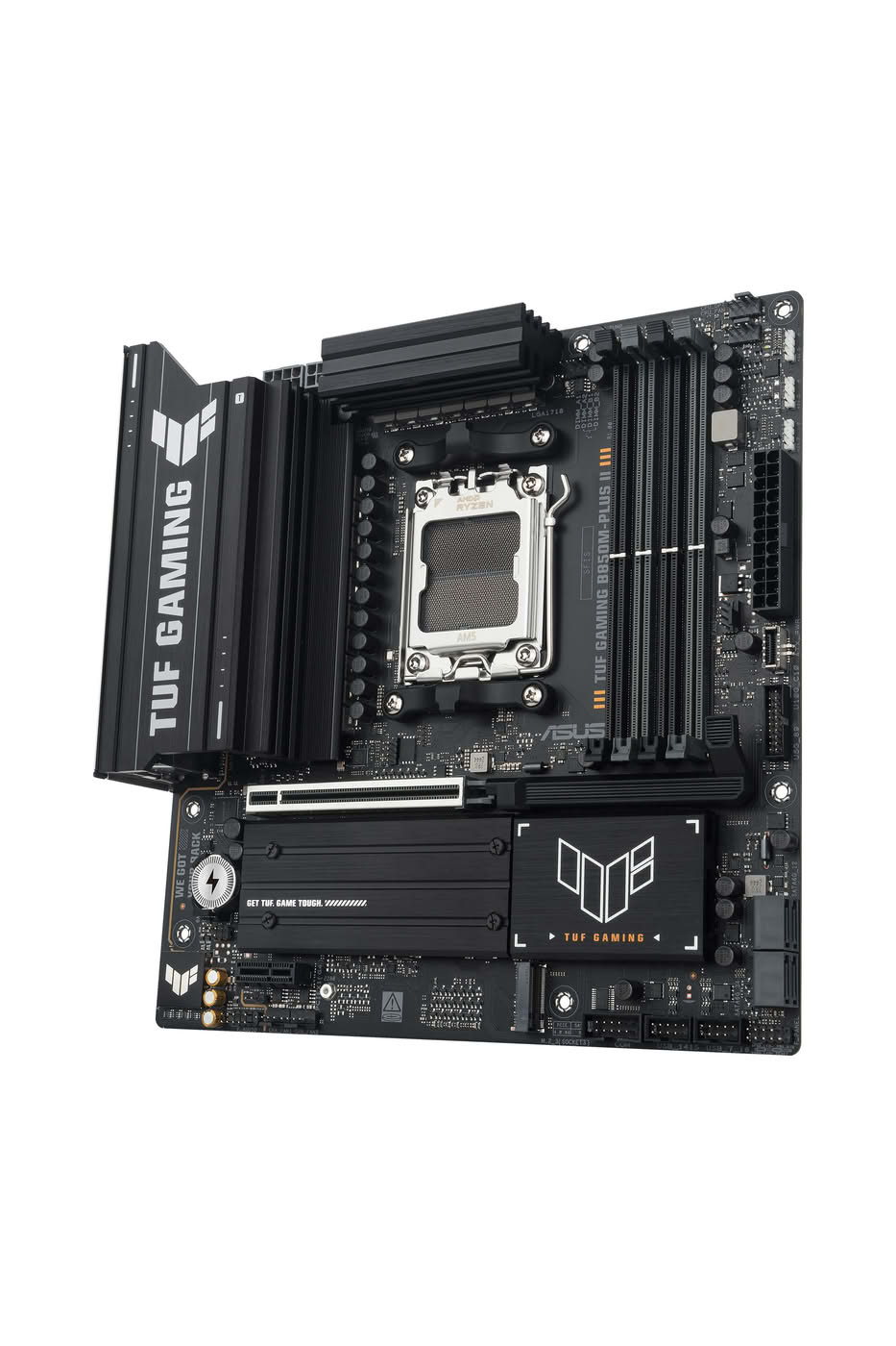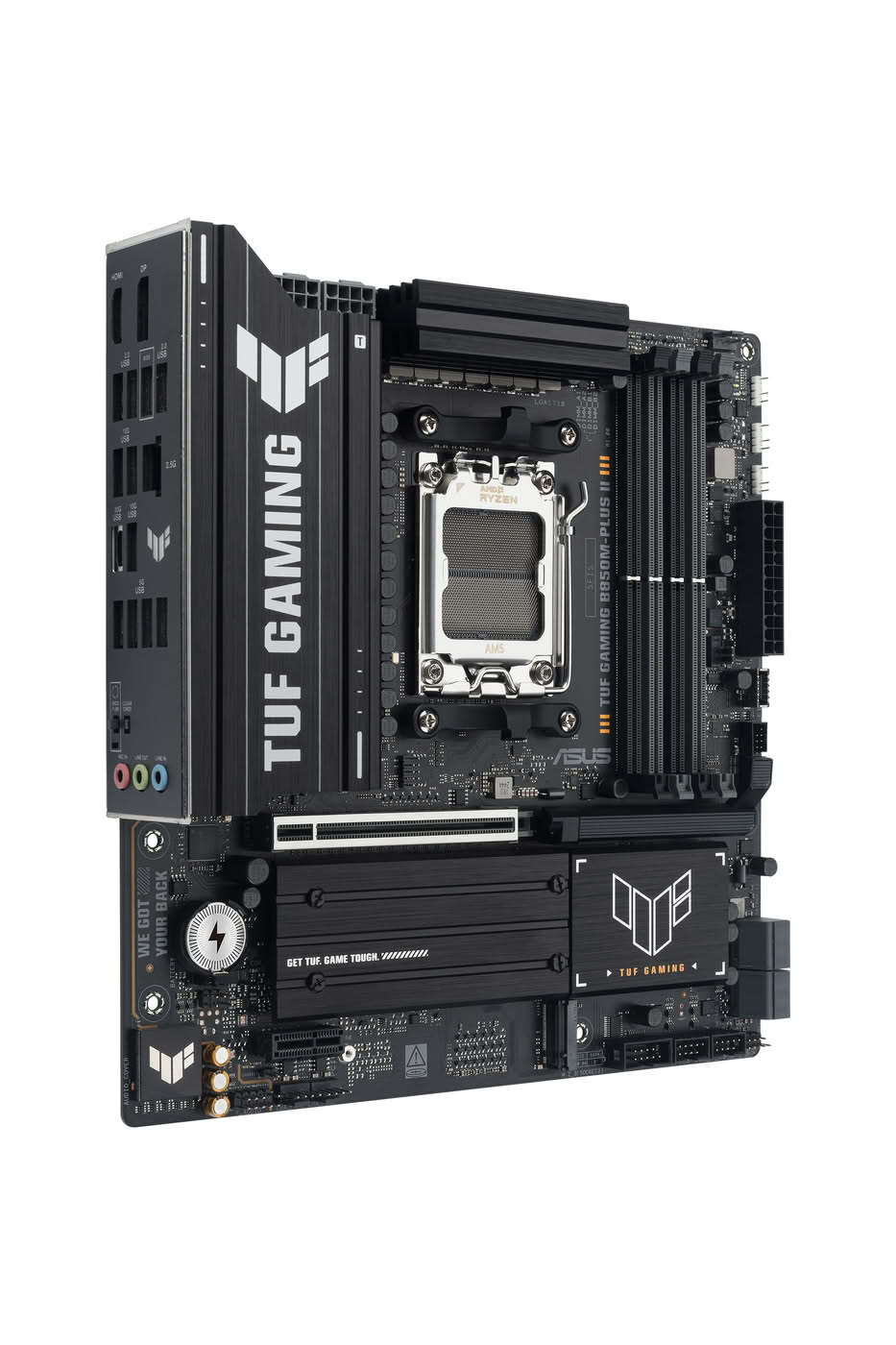 TUF GAMING B850M-PLUS II Das ASUS TUF GAMING B850M-PLUS II nimmt alle wesentlichen Elemente der neuesten AMD Ryzen™ Prozessoren auf und kombiniert sie mit spieletauglichen Funktionen und bewährter Haltbarkeit. Mit Komponenten in Militärqualität, einer verbesserten Stromversorgungslösung und einem umfassenden Kühlsystem übertrifft dieses Mainboard alle Erwartungen und bietet eine felsenfeste und stabile Leistung für Gaming-Marathons. TUF GAMING-Mainboards werden außerdem strengen Härtetests unterzogen, um sicherzustellen, dass sie Bedingungen standhalten, bei denen andere versagen könnten. Diese Plattform bietet die Leistung und Konnektivität, die fortschrittliche KI-PC-Anwendungen erfordern.